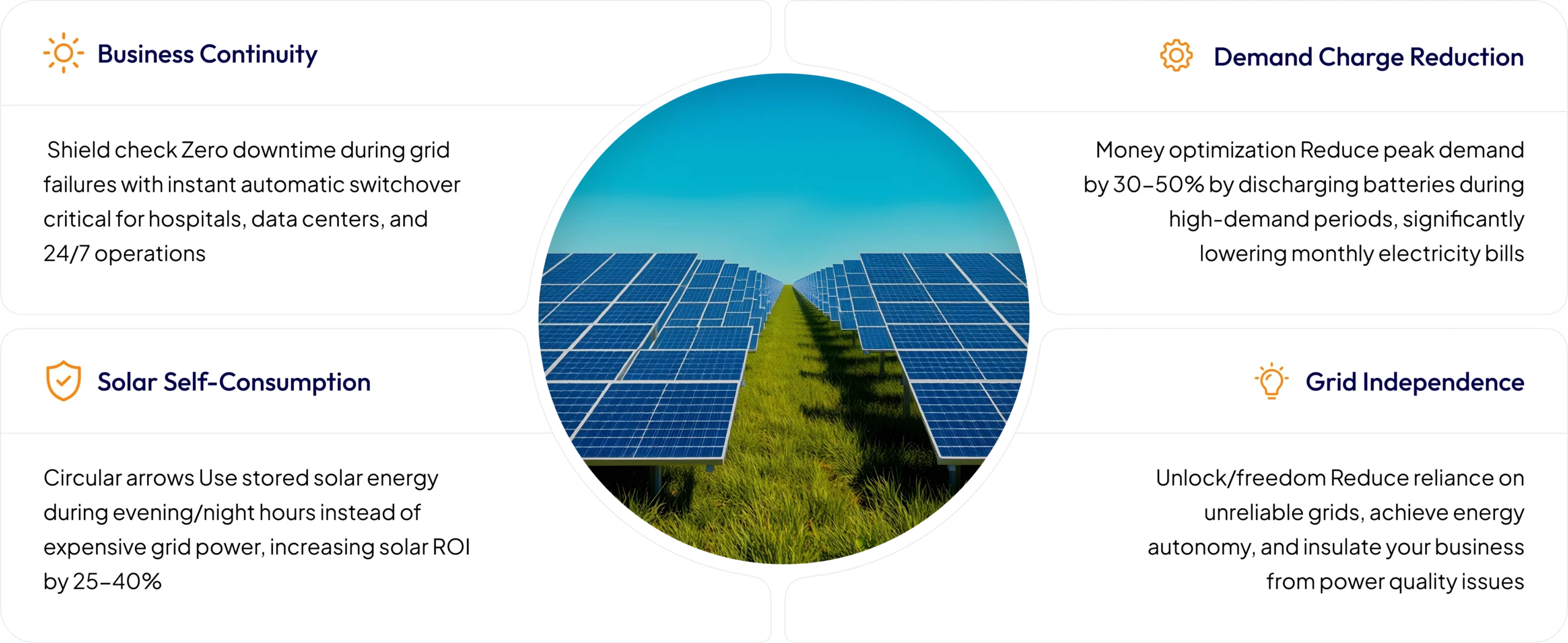 Cut your peak demand costs by 30–50%. By discharging batteries during high-rate periods, we significantly lower your monthly electricity bills.