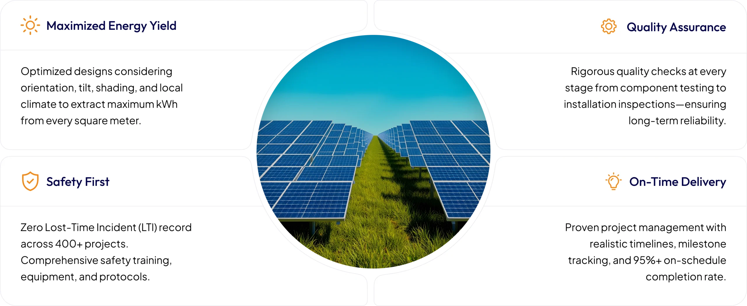 Perform rigorous system checks and grid synchronization to ensure your plant meets all utility and performance standards and are built to last for 25+ years.
